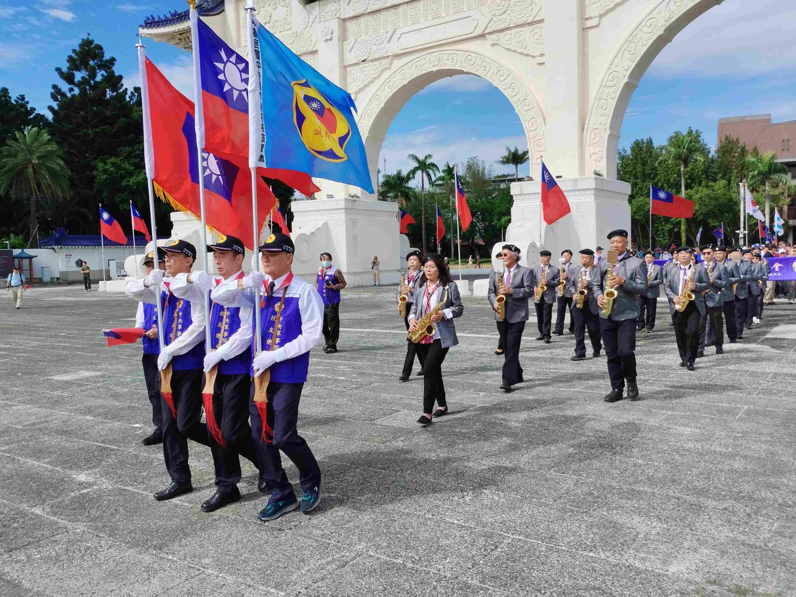 由灰熊樂團開啟活動序幕,暖場及演奏,榮光籃協合唱團領唱國歌,並向革命老英雄 1.連城珍:海軍洛陽艦隊,航海下士, 2.陳 卿:第十師通信連,下士技術士, 3.林進賢:海軍湘江艦,聲納下士, 4.蘇文東:陸軍第2師砲兵連,士兵82砲手,等四位英雄致敬頒發紀念牌。後林奕華副市長及彭理事長致詞,並齊唱蔣公紀念歌,全體大合影後,共計23個參加單位全體步行進場至正殿向 蔣公銅像致敬。